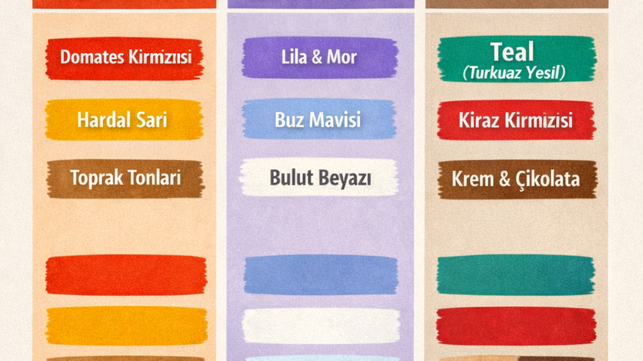 Moda raporları ve podyum trendleri 2026’da iki güçlü çizgiye işaret ediyor: vurucu canlı tonlar ve sakin, giyilebilir nötrler. Sezonun öne çıkanları arasında teal (turkuaz-yeşil ekseni), domates kırmızısı, lila-mor ve yumuşak beyazlar dikkat çekiyor. Bu yıl “doğru renk” seçiminin anahtarı ise uzmanlara göre ten alt tonunu bilmek.