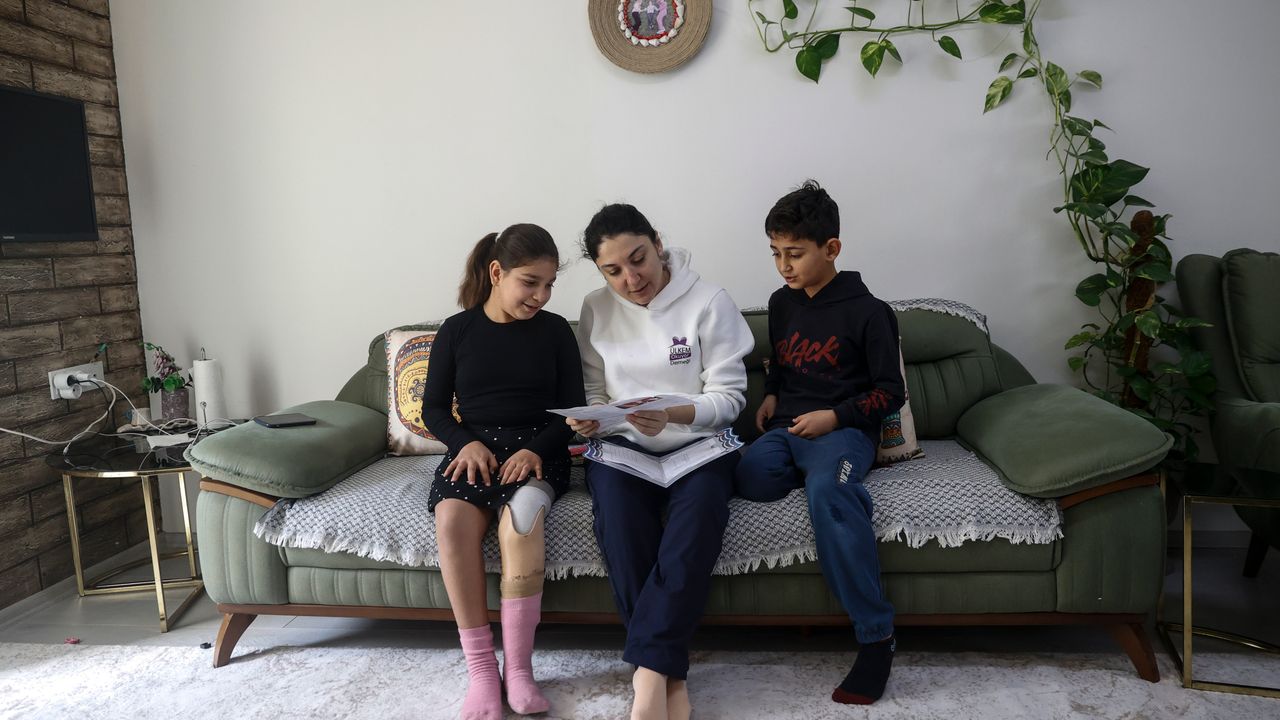 Protezle yeniden yürümeye başlayan, annesi ve iki kardeşiyle Mersin'in Mezitli ilçesinde yaşama tutunan Çelenk, azmiyle depremin izlerini silmeye çalışıyor.