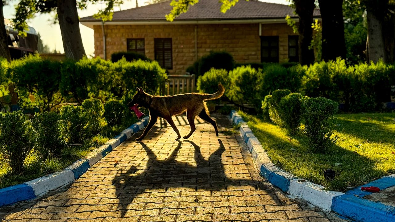 AA Kahramanmaraş muhabirleri, bir ay önce Kahramanmaraş Büyükşehir Belediyesi Kapıçam Sokak Hayvanları Rehabilitasyon Merkezi'nden ofis bahçesinde bakılmak üzere köpek sahiplendi.