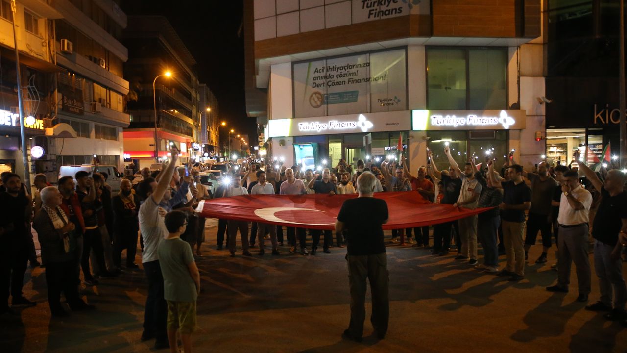 Dörtyol ilçesi Çaylı Caddesi'nde toplanan vatandaşlar da filodaki aktivistler için dua etti.