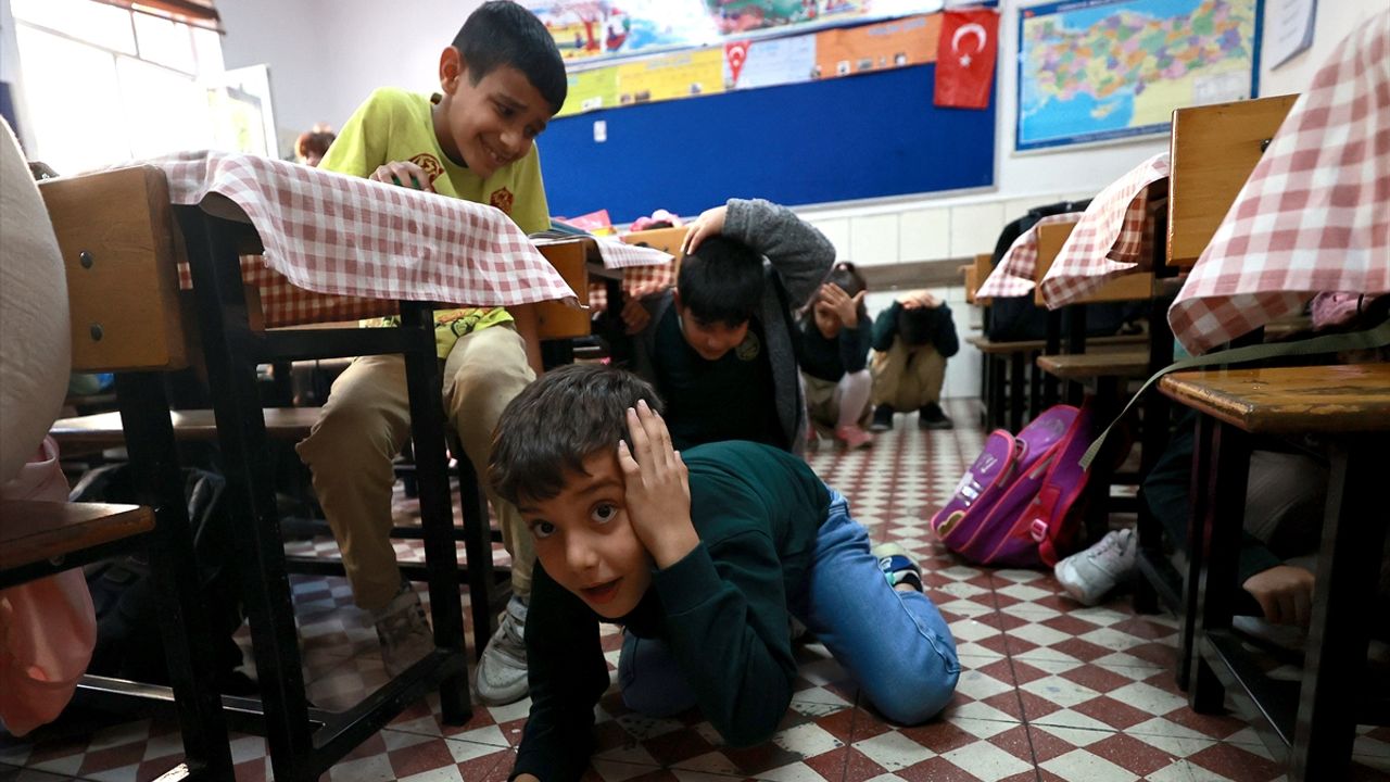Hatay'daki okullarda da Milli Eğitim Bakanlığının 'Afetler ve Dayanıklılık Ayı' etkinlikleri kapsamında eş zamanlı tahliye tatbikatı düzenlendi.