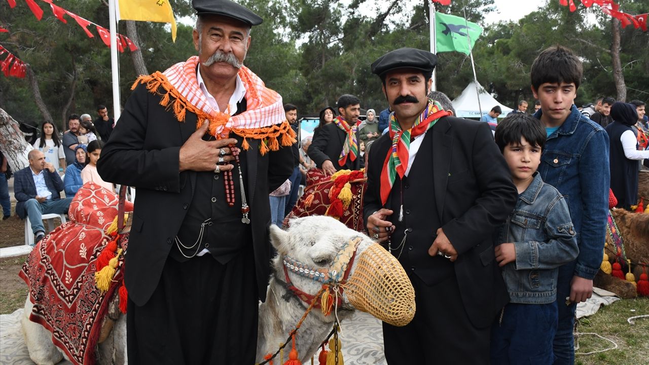 Şölene yöresel kıyafetlerle katılan Yörükler, bindikleri develerle kervan yürüyüşü yaptı.