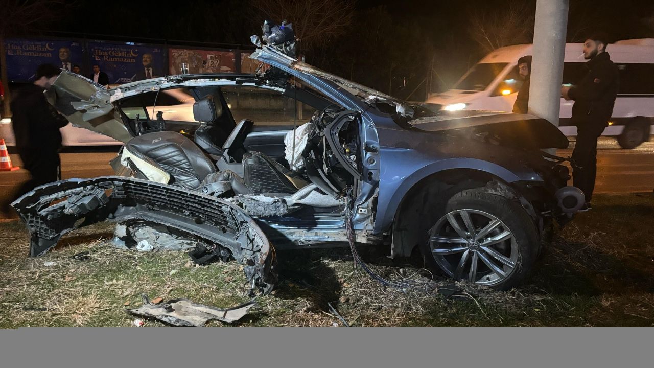 Dr. Sadık Ahmet Bulvarı'nda ehliyetsiz sürücü S.K. (17) yönetimindeki 01 ACP 425 plakalı otomobil kontrolden çıkarak refüjdeki ağaca çarptıktan sonra ikiye ayrıldı.