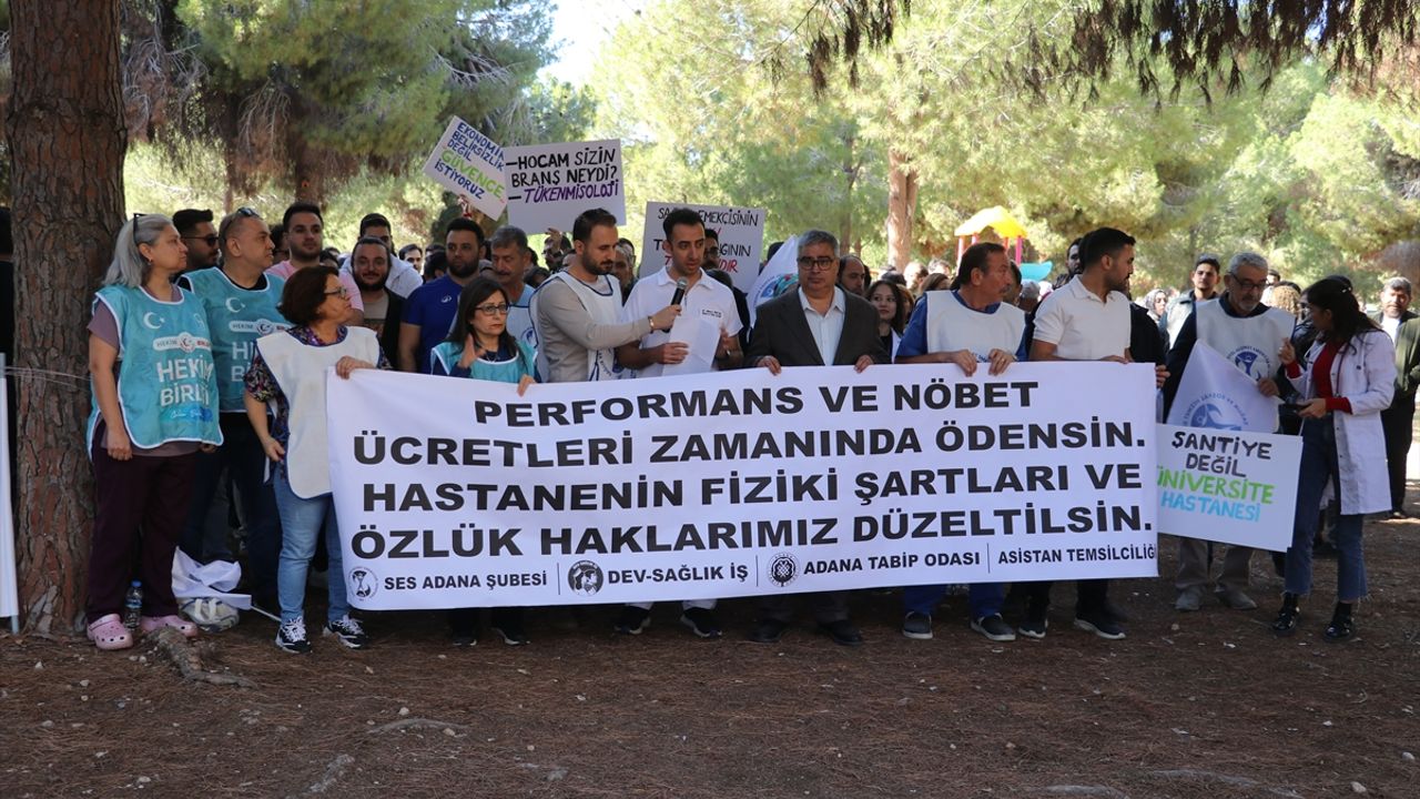 ADANA (AA) - Adana'da Çukurova Üniversitesi Tıp Fakültesi Balcalı Hastanesi'nde bazı asistan hekimler, ek ödemelerin zamanında yatırılması talebiyle eylem yaptı.