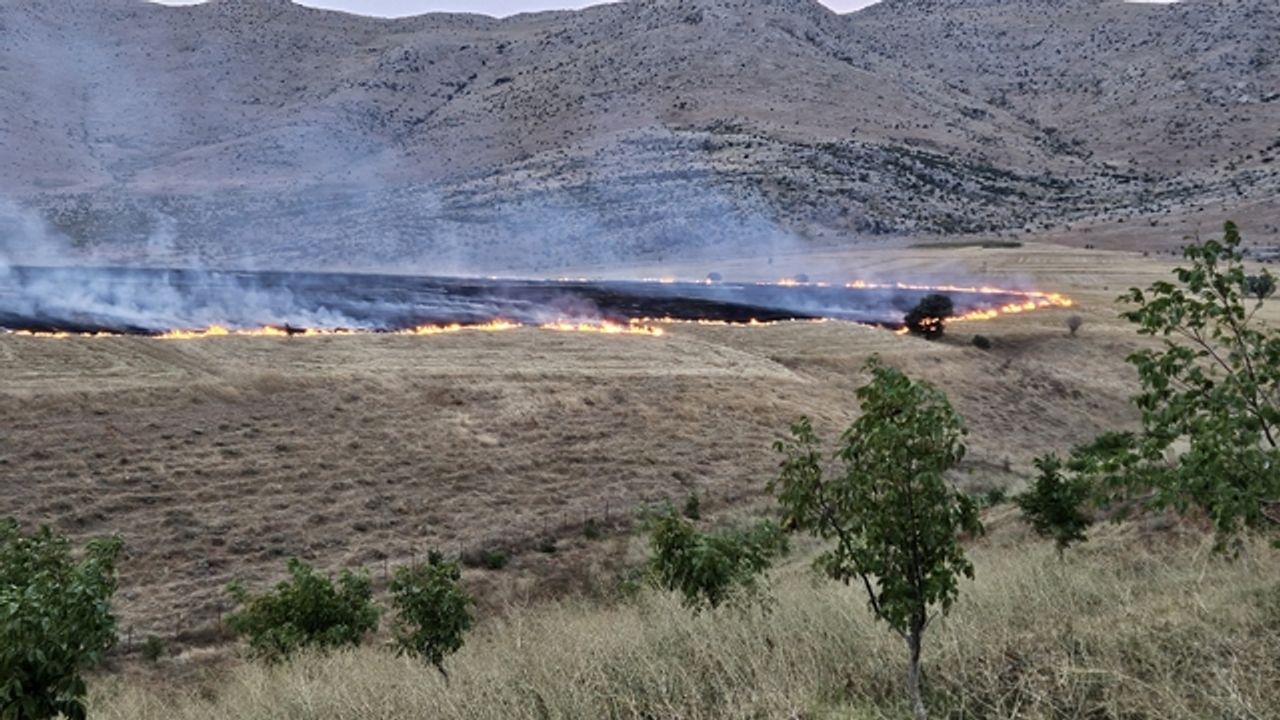 Büyükmangıt Mahallesi'ndeki tarlada anız yangını çıktı.