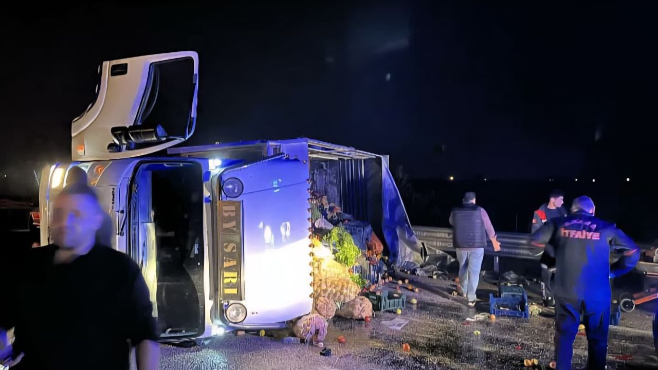 Sürücüsünün ismi ve plakası henüz öğrenilemeyen kamyonet, Kozan-Adana kara yolunun Tırmıl mevkisinde devrildi.
