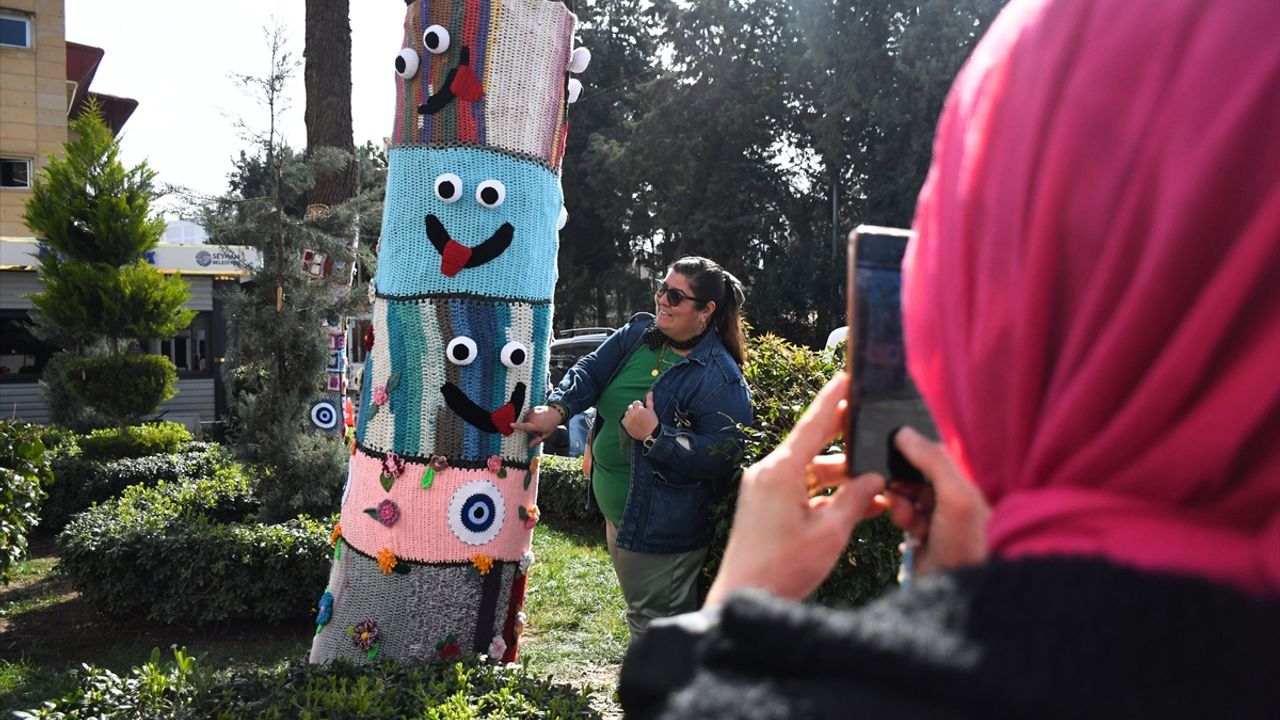 ADANA (AA) - Adana'nın merkez Seyhan ilçesinde kadınların elinden çıkan renkli örgülerle ağaçlar süslendi.