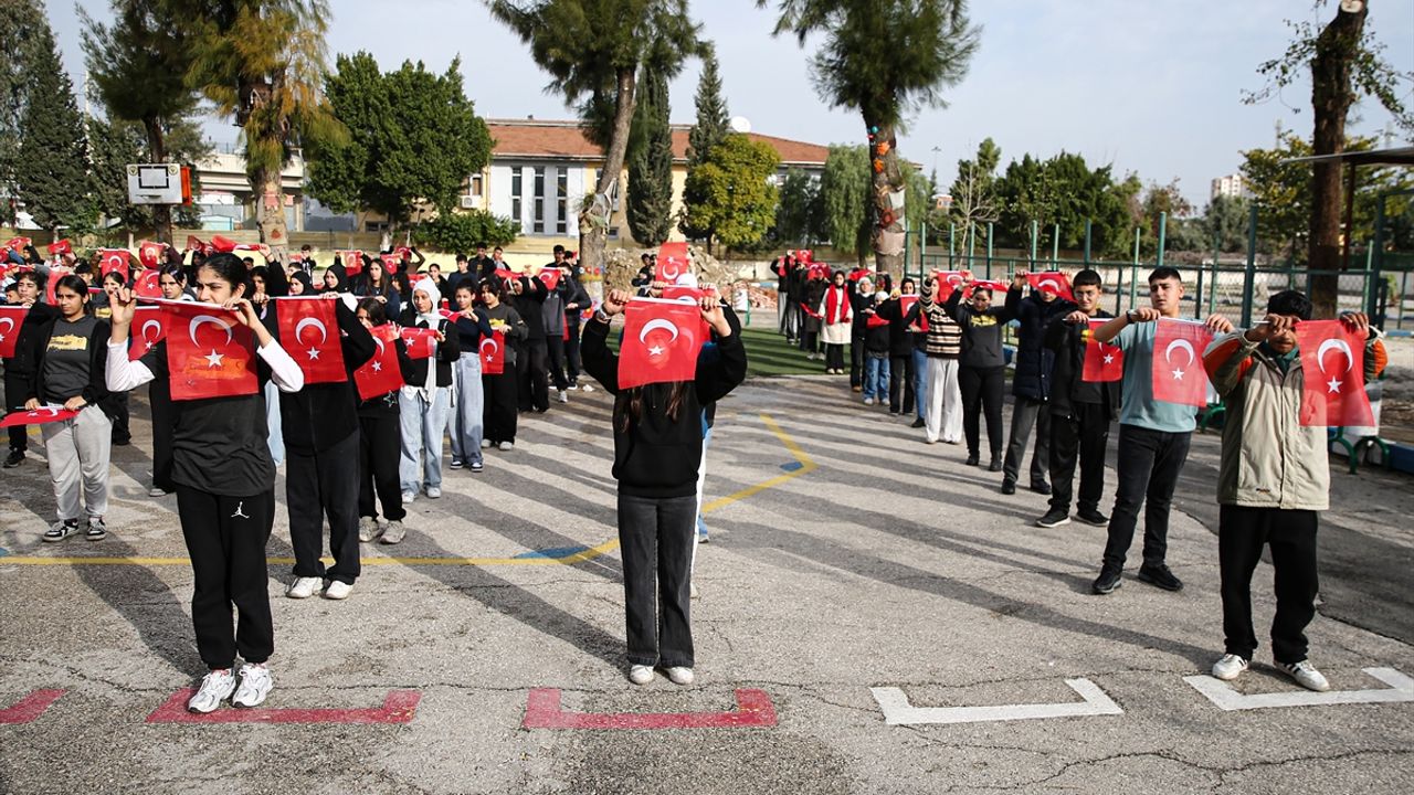 ADANA (AA) - Adana'da yarıyıl tatilinin ardından dersbaşı yapan ortaokul öğrencileri, Türk bayraklarıyla koreografi oluşturdu.