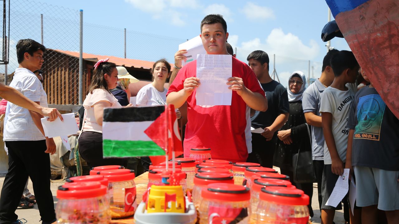 ADANA (AA) - Adana'da Down sendromlu ve otizmli çocuklar, İsrail'in saldırılarının sürdüğü Gazze'deki akranları için yazdıkları mektupları ve gıda malzemelerini şişelere koyarak denize bıraktı.