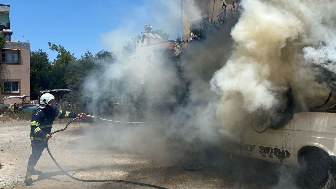 ADANA (AA) - Adana'nın Kozan ilçesinde park halindeki minibüste çıkan yangın itfaiye ekiplerince söndürüldü.
