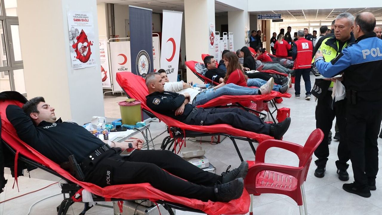 İl Emniyet Müdürlüğü binasında düzenlenen bağış kampanyasına, çok sayıda polis destek verdi.