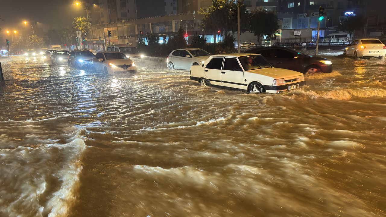 ADANA (AA) - Adana'da etkili olan sağanak nedeniyle cadde ve sokaklarda oluşan su birikintileri ulaşımda aksamalara yol açtı.