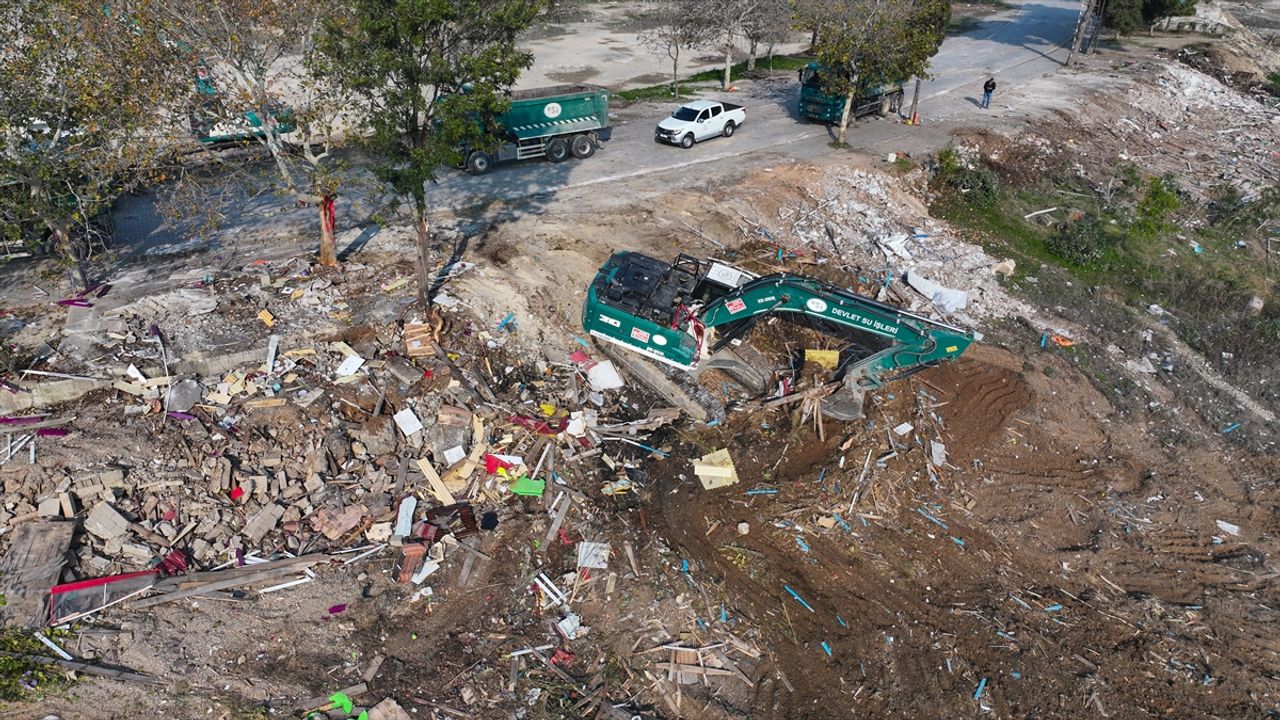 Yıkım çalışmalarının ardından girişe yasaklanan bölgede enkaz kaldırma çalışmaları devam ediyor.