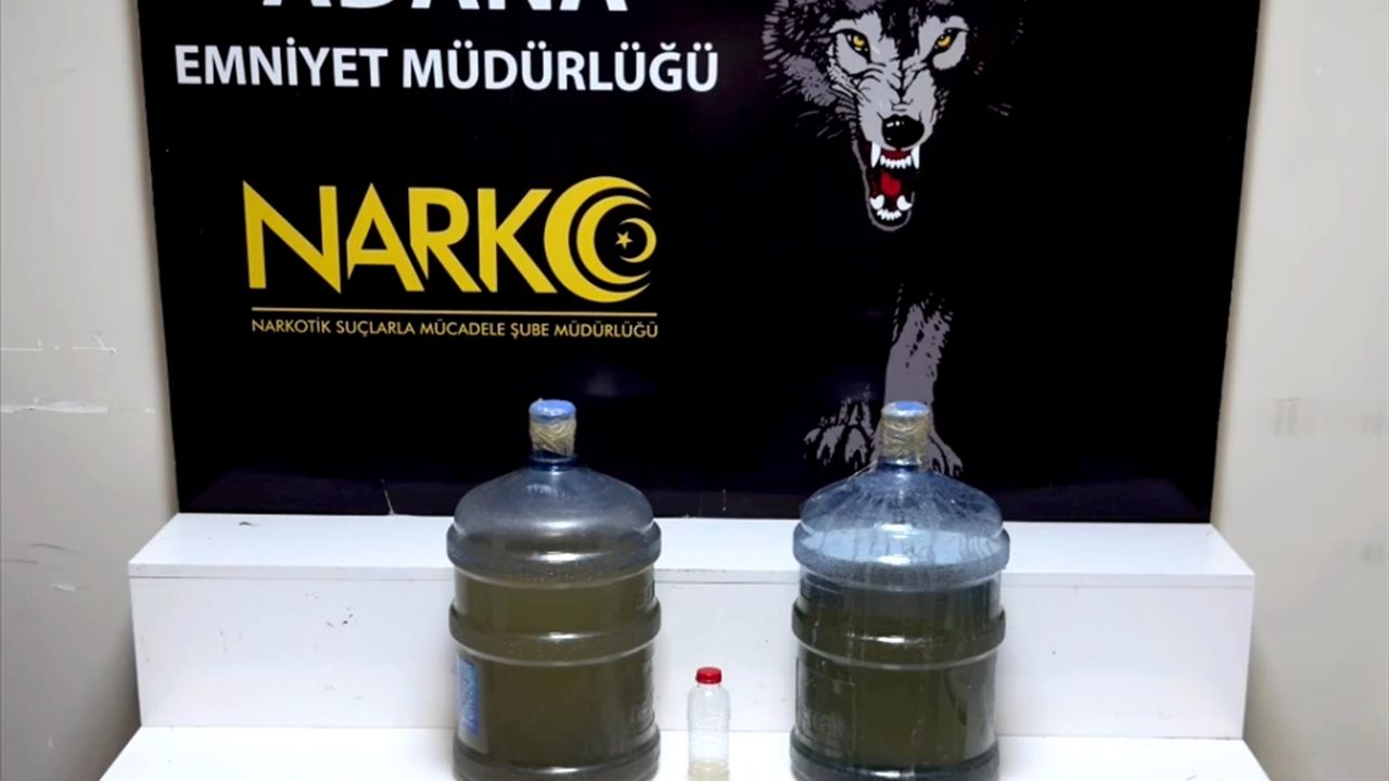 Köpeğin tepki verdiği araçta iki damacanada 28 kilo 650 gram sıvı metamfetamin ele geçirildi.