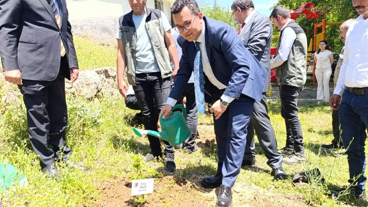 Katılımcılar daha sonra vefat eden öğretmenler için okul bahçesinde fidan dikti.