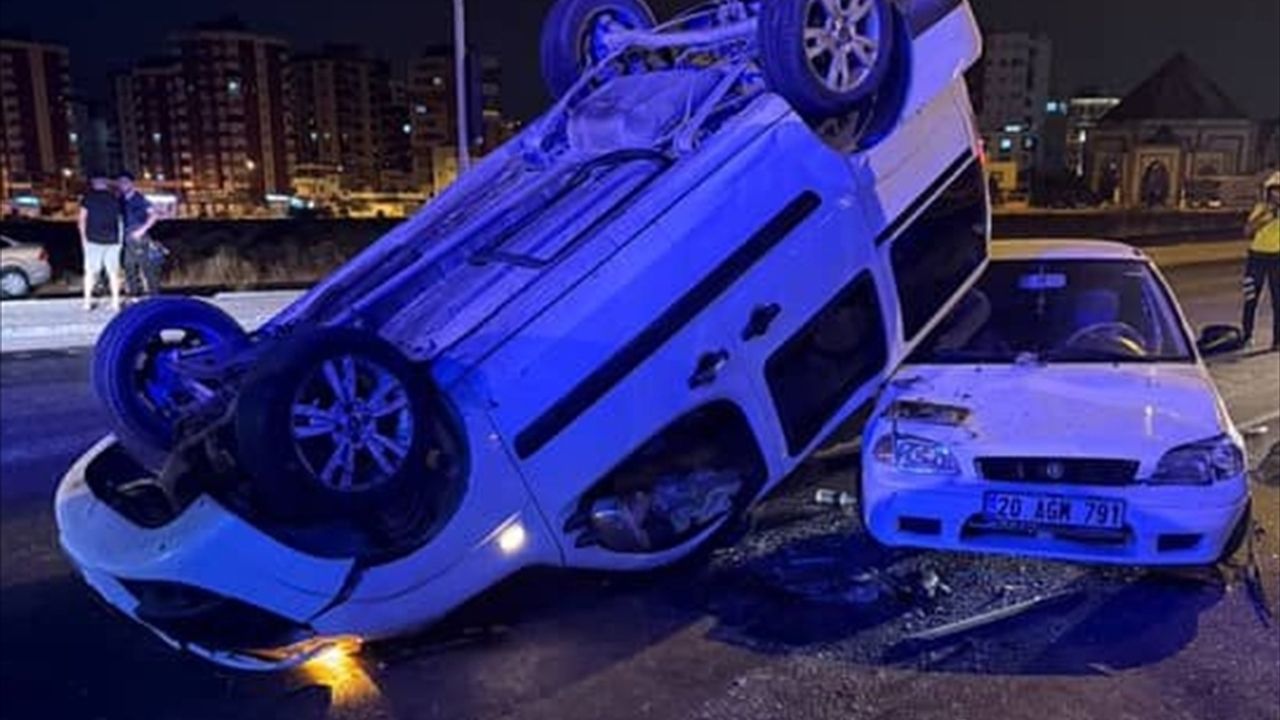 Sürücüsü ve plakası öğrenilemeyen hafif ticari araç, Necmettin Erbakan Bulvarı'nda önce midibüse, ardından da otomobile çarpıp ters döndü.