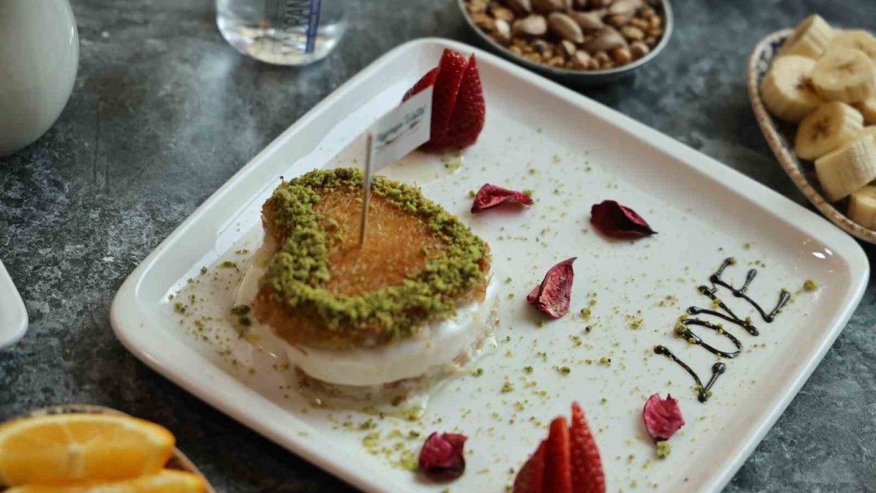 Kentte uzun yıllardır tatlıcılık yapan Zeynep Geyik, Sevgililer Günü’nde birbirlerine hediye sunma arayışa giren çiftlere alternatif sunmak için 14 Şubat’a özel kalp şeklinde künefe hazırladı.