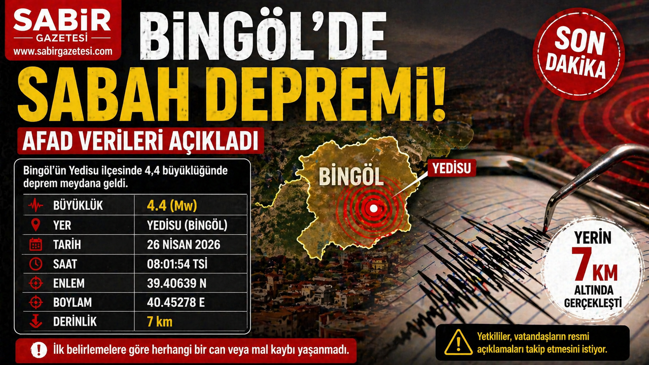 AFAD tarafından paylaşılan bilgilere göre deprem, 26 Nisan 2026 günü saat 08.01’de Bingöl’ün Yedisu ilçesinde meydana geldi. 4.4 büyüklüğündeki sarsıntı çevre ilçelerde de hissedildi.