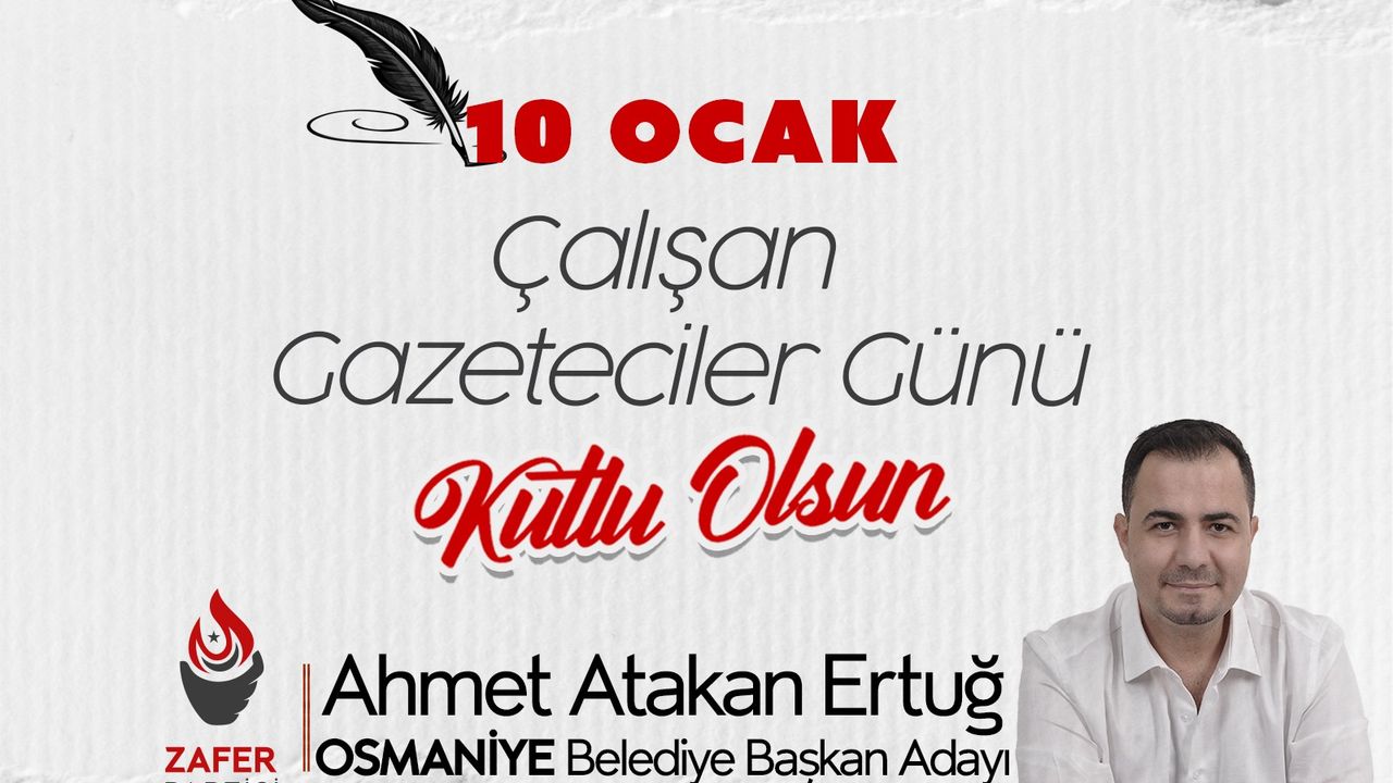 Zafer Partisi'nin Osmaniye Belediye Başkan Adayı Ahmet Atakan Ertuğ, 10 Ocak Çalışan Gazeteciler Günü münasebetiyle bir mesaj yayınladı.