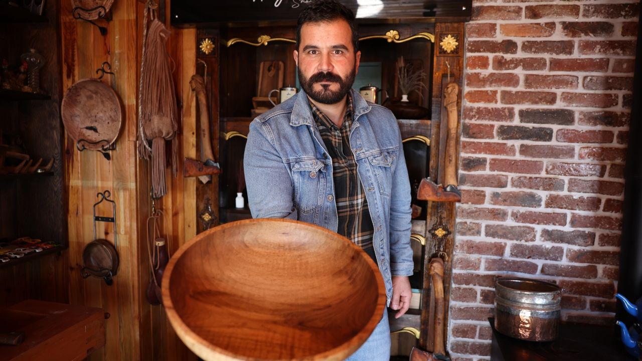 Örsan Sami Şener, AA muhabirine, ahşap oymacılığına ilgisinin zamanla tutkuya dönüştüğünü söyledi.