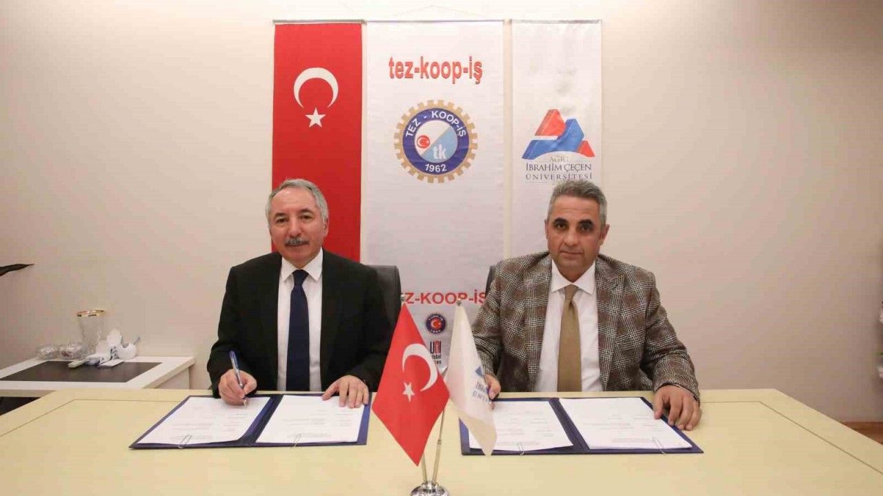 Ağrı İbrahim Çeçen Üniversitesi (AİÇÜ) ile Türkiye Ticaret, Kooperatif, Eğitim, Büro ve Güzel Sanatlar İşçileri Sendikası (Tez-Kop-İş) arasında toplu iş sözleşmesi imzalandı.
