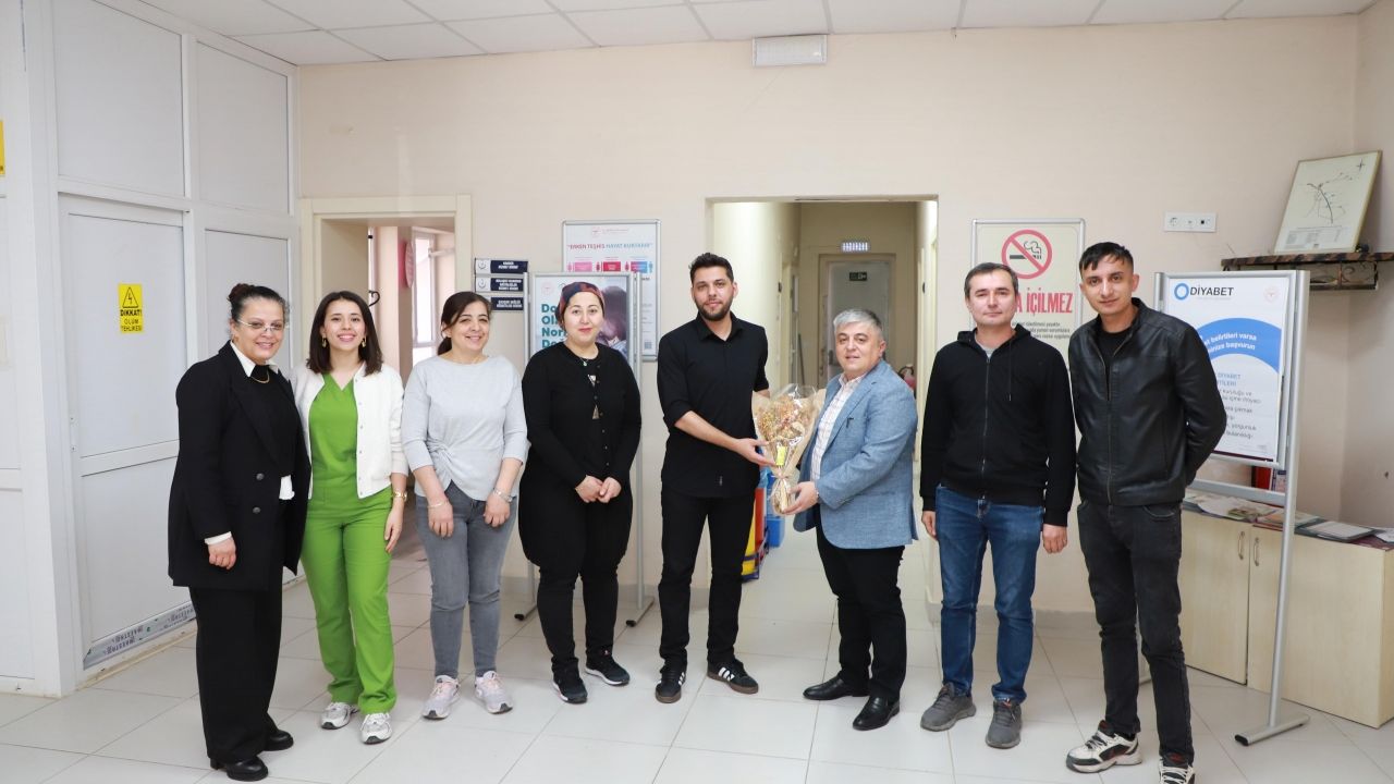 Gündoğdu ve Karasoy, ziyaretlerde sağlık çalışanlarına çiçek vererek, günlerini kutladı.