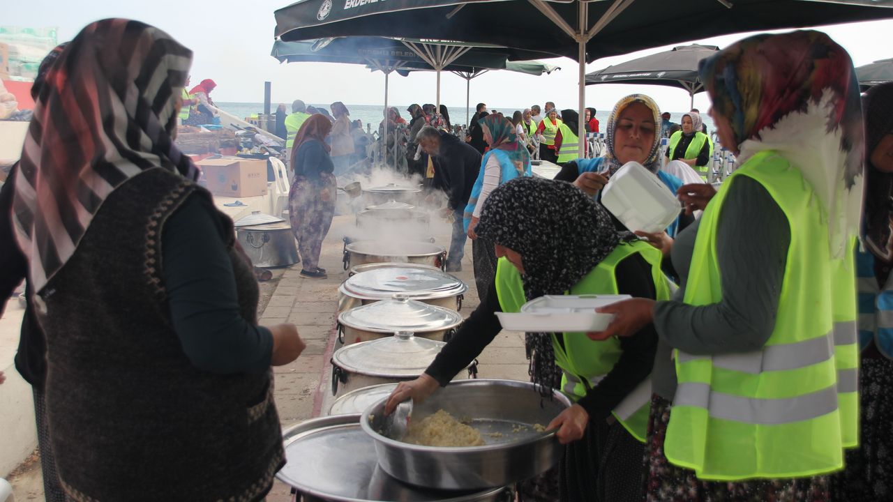 Dr. Devlet Bahçeli Meydanı'nda gerçekleşen etkinlikte ilçedeki 71 mahalleyi temsilen 71 kazanda odun ateşinde pişirilen yöresel yemekler vatandaşlara ikram edildi.