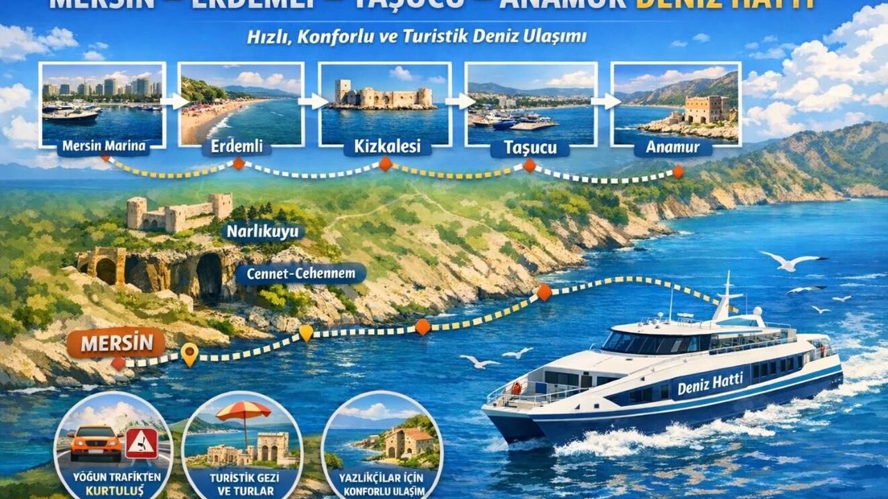 Mersin Limanı’ndan başlayarak Erdemli, Taşucu ve Anamur hattına uzanan deniz ulaşım hattı, Akdeniz’in eşsiz kıyılarını keşfetmek isteyenler için yeni bir fırsat sunuyor. Karadaki trafik derdi olmadan keyifli ve hızlı bir ulaşım imkânı sağlayacak bu rota, hem turistik geziler hem de günübirlik seyahatler için ideal bir seçenek olarak öne çıkıyor.