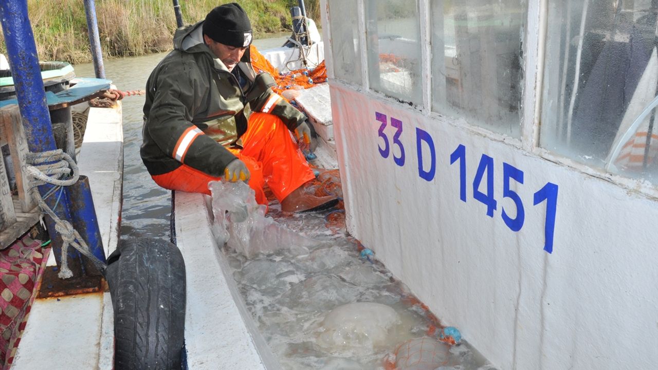 Mesailerinin verimsiz geçtiğini belirten Akış, "Her seferinde ağlarımız denizanasıyla doluyor, günümüz boşa gidiyor. 1500 metrelik ağımız komple denizanasıyla doldu. Balık tutamıyoruz. Çok kötü durumdayız." dedi.