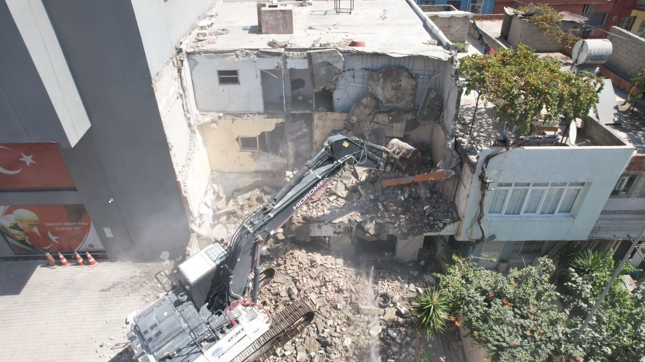 Akdeniz Belediyesinin açıklamasına göre, Fen İşleri Müdürlüğü ekipleri, yasal prosedürlerin tamamlanmasının ardından İhsaniye Mahallesi'ndeki binanın yıkımı için çalışma başlattı.