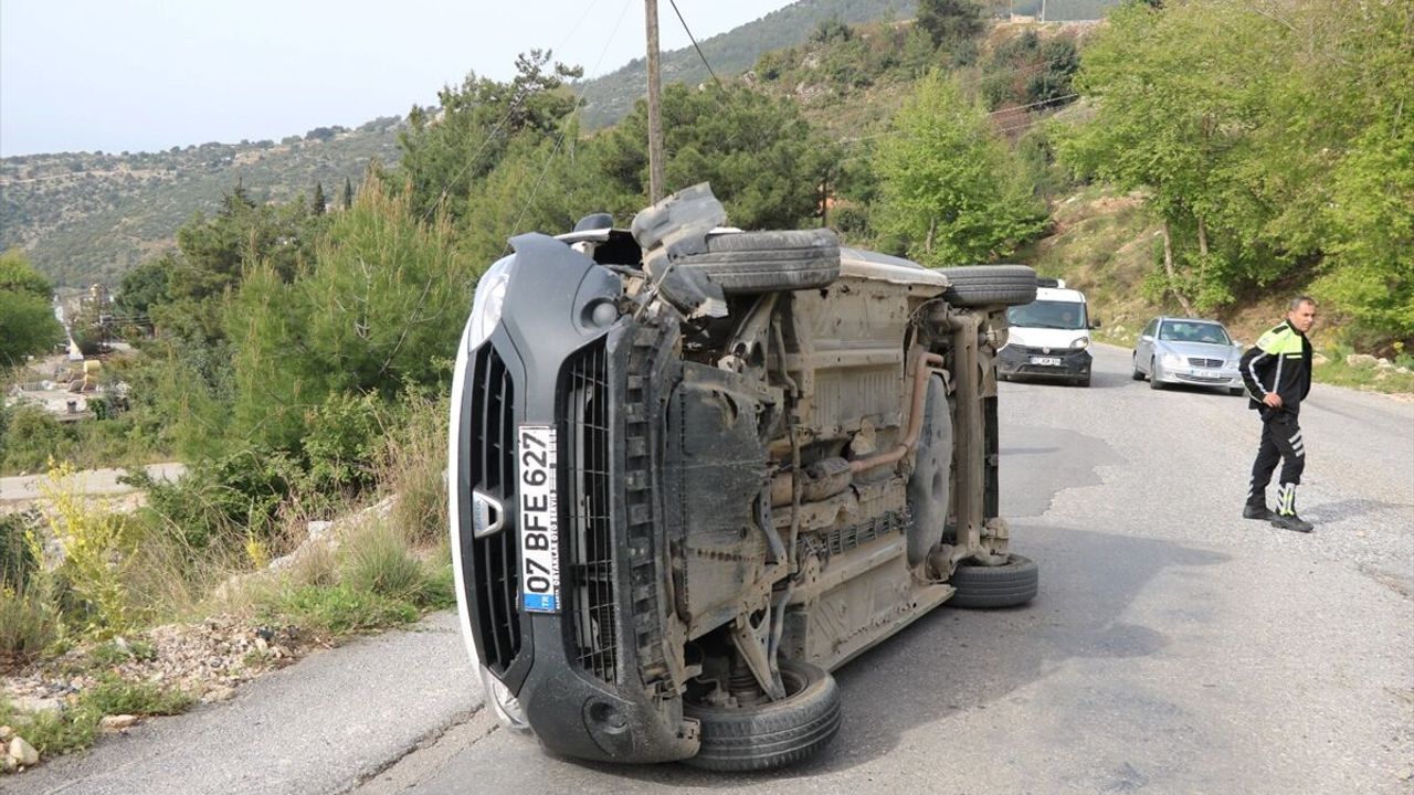 E.K. yönetimindeki 07 BFE 627 plakalı otomobil, Tepe Mahallesi Çataloluk Caddesi'nde refüje çarparak devrildi.