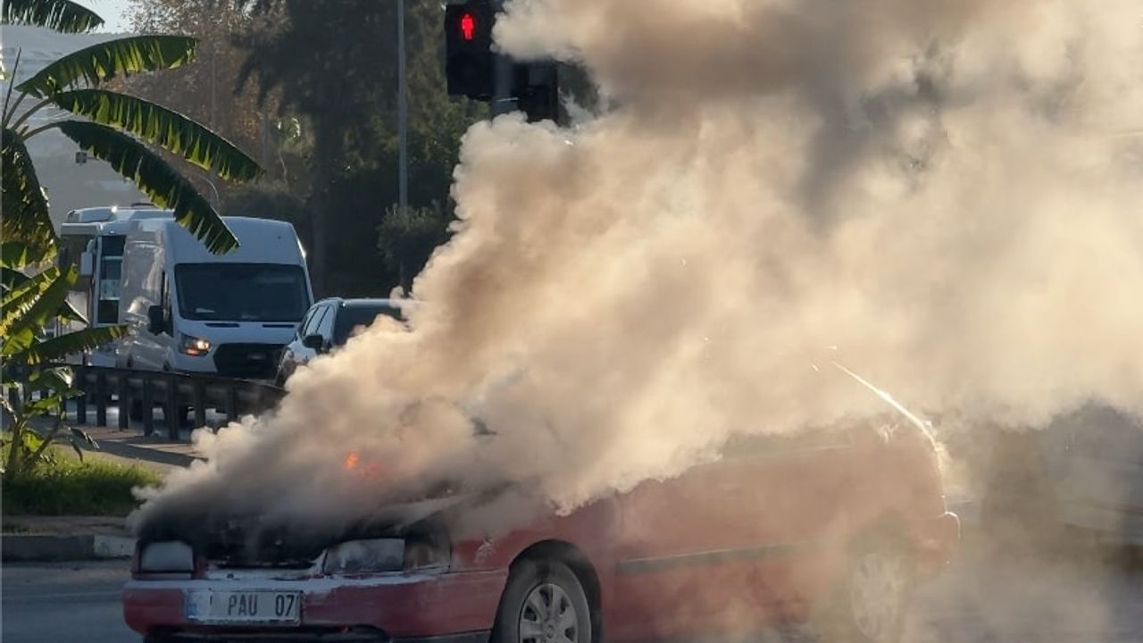 ANTALYA (AA) - Antalya'nın Alanya ilçesinde seyir halinde yangın çıkan otomobil kullanılamaz hale geldi.