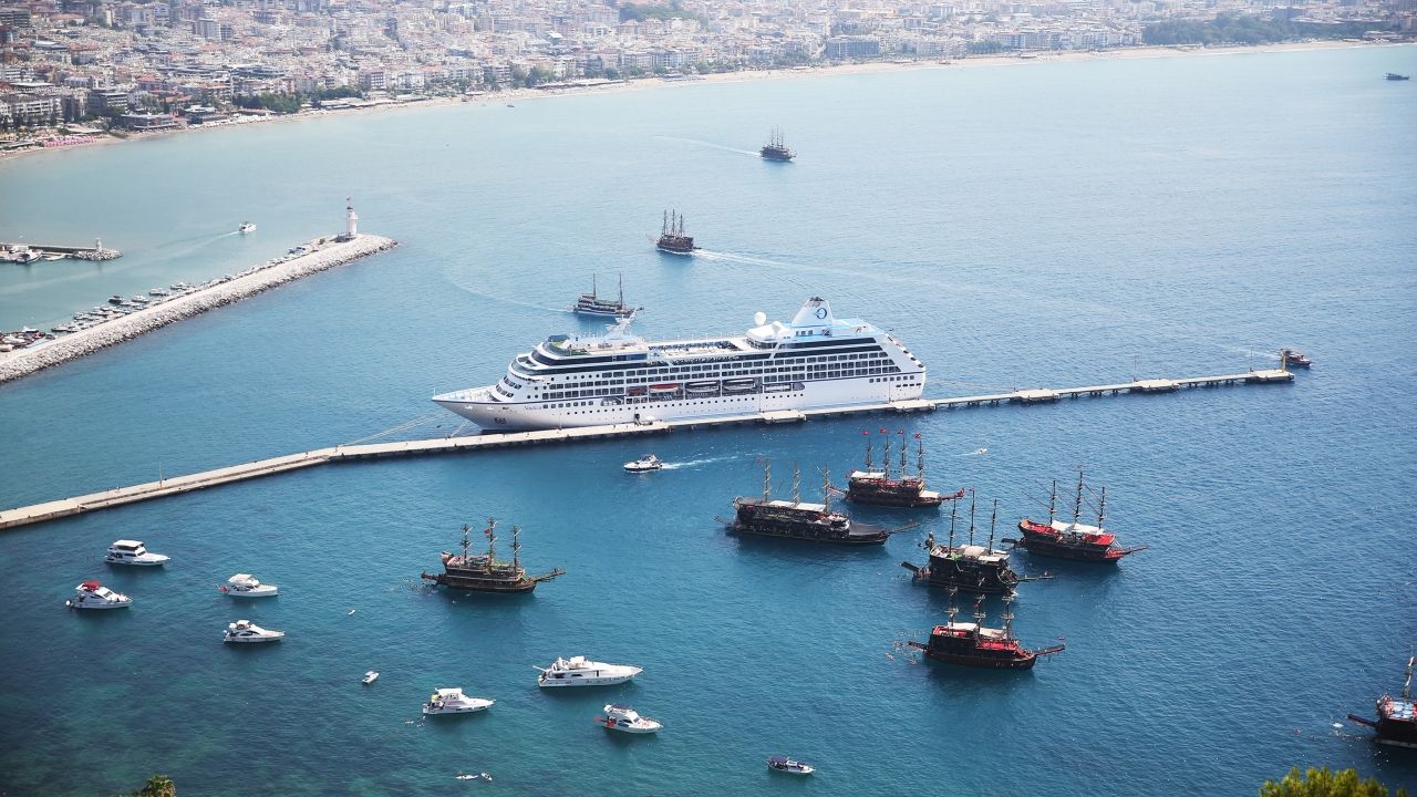 Antalya Limanı'ndan gelen Marshall Adaları bayraklı 180 metre boyundaki kruvaziyer, Alanya Limanı'na yanaştırıldı.