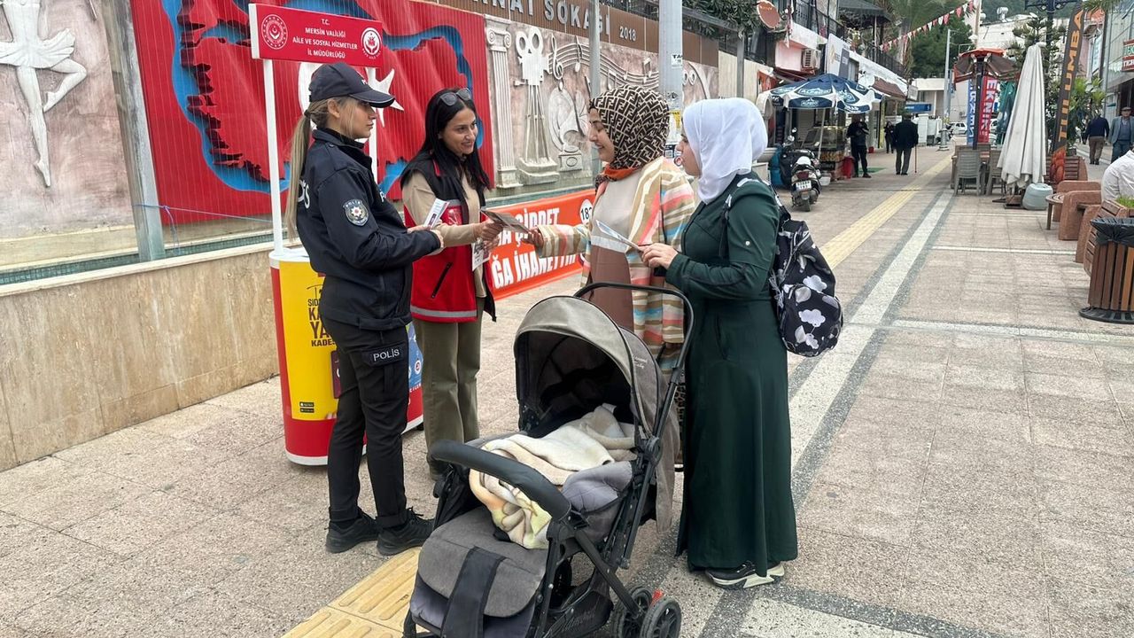 Anamur Sosyal Hizmet Merkezi ve İlçe Emniyet Müdürlüğü ekipleri, 8 Mart Dünya Kadınlar Günü kapsamında kent meydanında stant açtı.
