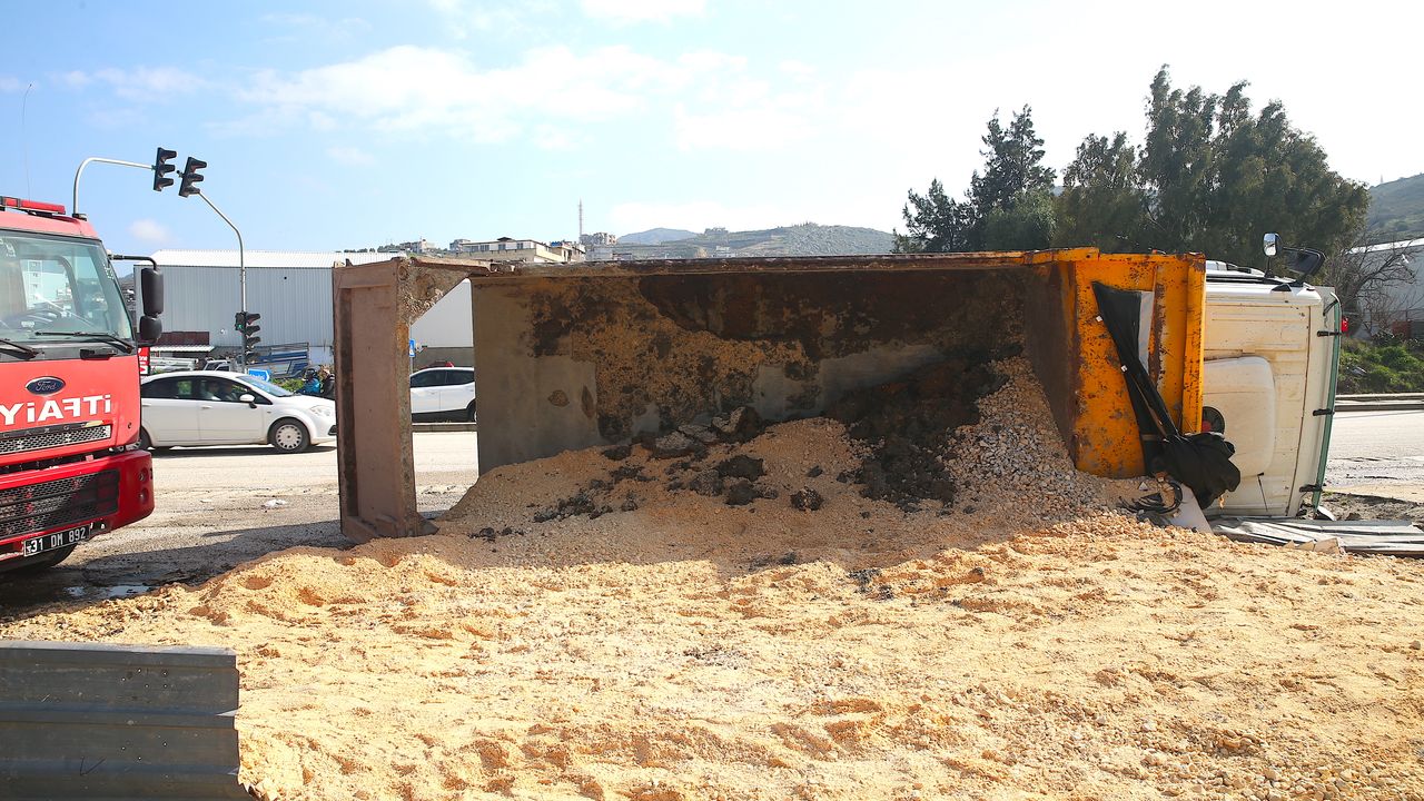 HATAY (AA) - Hatay'ın merkez Antakya ilçesinde devrilen hafriyat kamyonunun sürücüsü yaralandı.