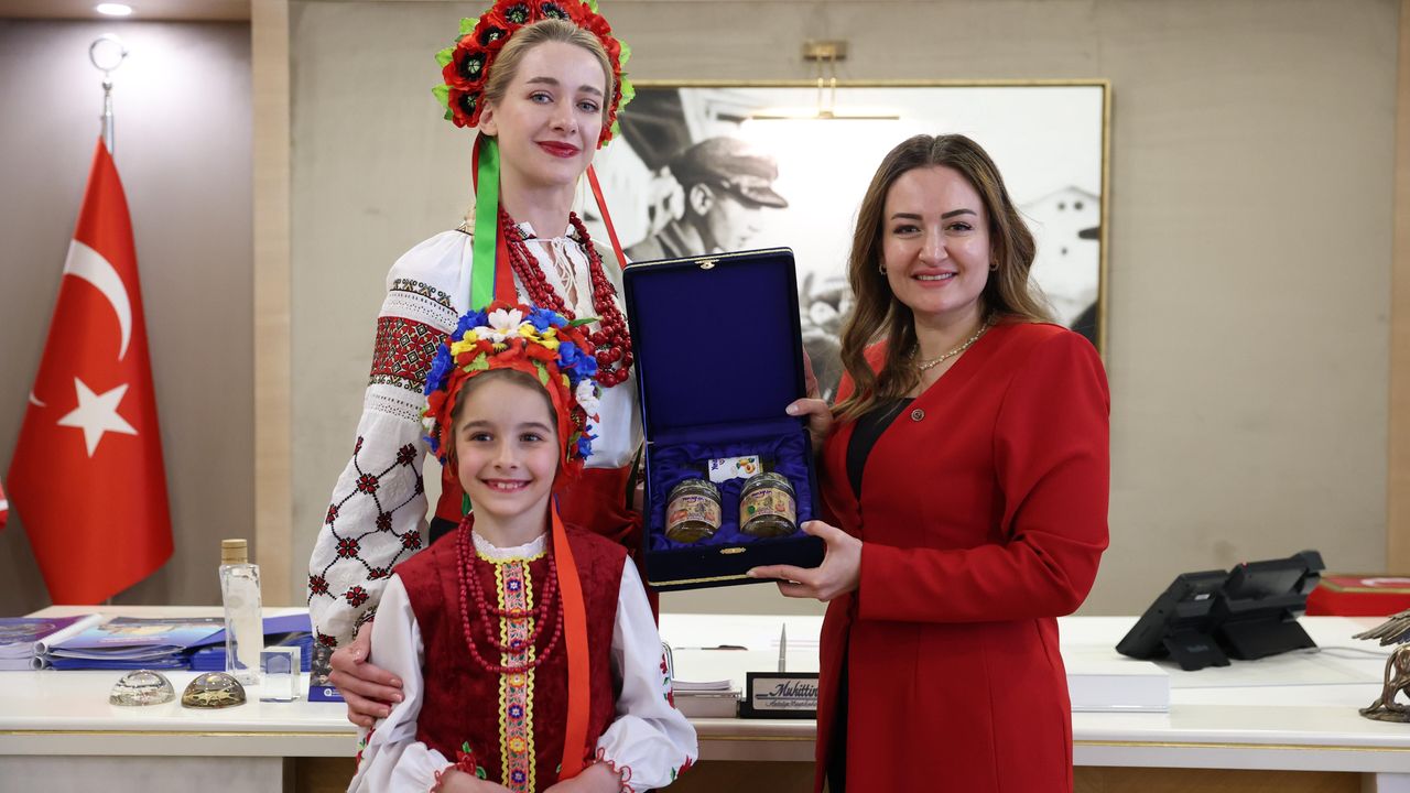Yöresel kıyafetleriyle ziyarete katılan çocuklar, ülkelerine özgü hediyeleri Özdemir'e takdim etti. Azerbaycan ve Kırgızistan'dan gelen çocukların yerel çalgılarıyla sunduğu kısa dinletiler ilgiyle izlendi.