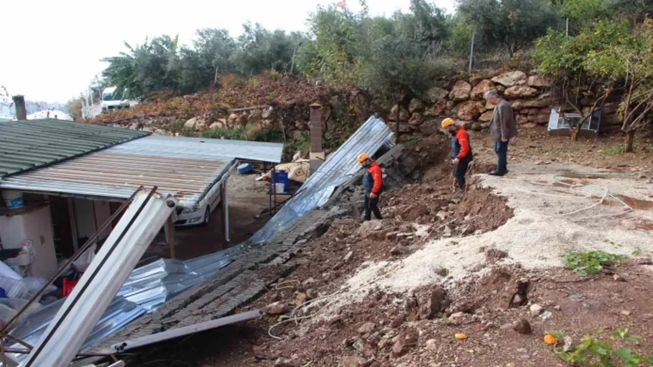 Kumluca ilçesinde sabaha karşı başlayan yağmur sonrası yumuşayan toprak nedeniyle 15 metre uzunluğunda ve 3 metre yükseklikteki istinat duvarı çöktü. Ailelerin evde olduğu sırada yaşanan çökme sırasında şans eseri kimse yaralanmazken, bir evin çıkma olarak tabir edilen bağımsız mutfak kısmı yıkıldı, diğer evin duvarlarında çatlak oluştu.