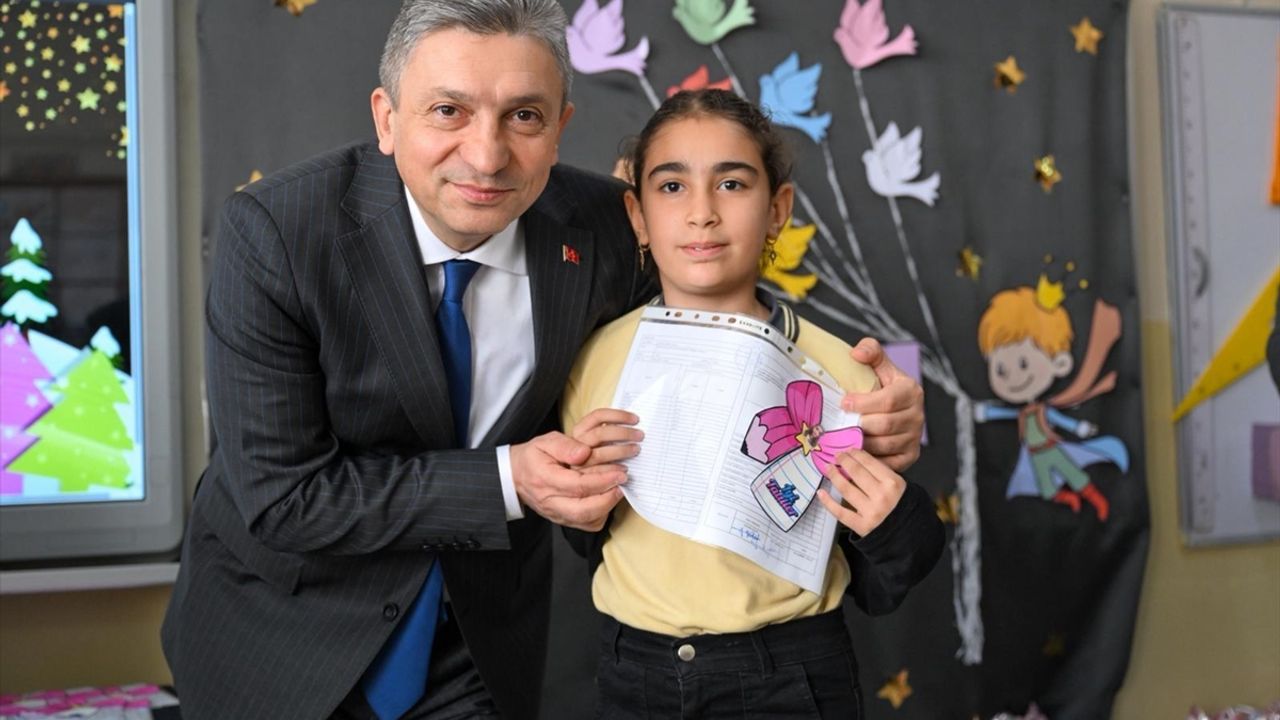 Vali Hulusi Şahin, Serik ilçesindeki Dr. Gülşen-Dr. Baki Özpınar İlkokulu'nda öğrencilere karnelerini ve hediyelerini verdi.
