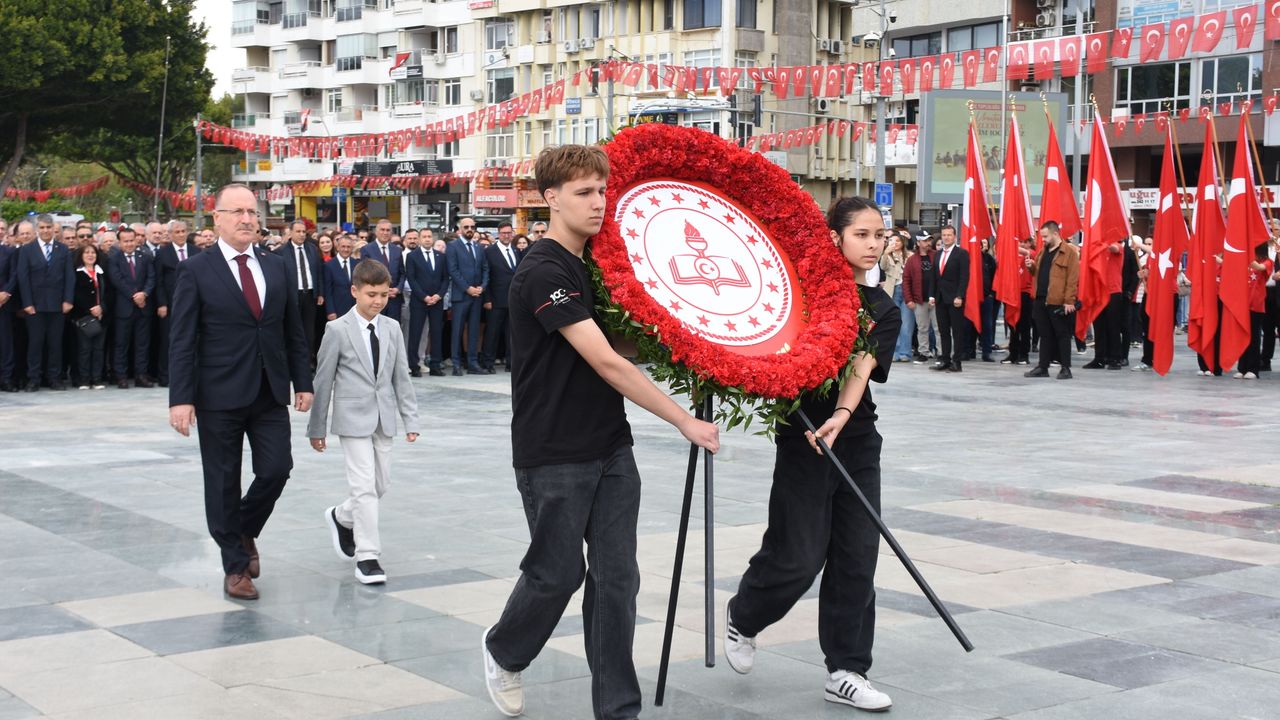 Antalya'daki kutlamalar, Cumhuriyet Meydanı'ndaki Atatürk Anıtı'na İl Milli Eğitim Müdürü Mehmet Yasin Eriş ve beraberindeki öğrencilerin çelenk sunmasıyla başladı.
