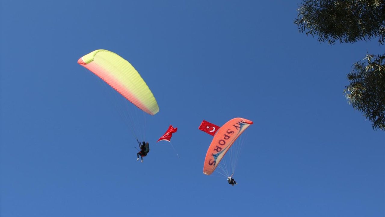 Etkinlikler kapsamında Kaş Havacılık Spor Kulübü üyesi 50 paraşütçü, Türk bayraklarıyla gruplar halinde atlayış yaptı. Paraşütçülerden birinin atlayış sırasında gökyüzünde dalgalandırdığı üzerinde Atatürk portresi bulunan 20 metrekarelik Türk bayrağı dikkati çekti.