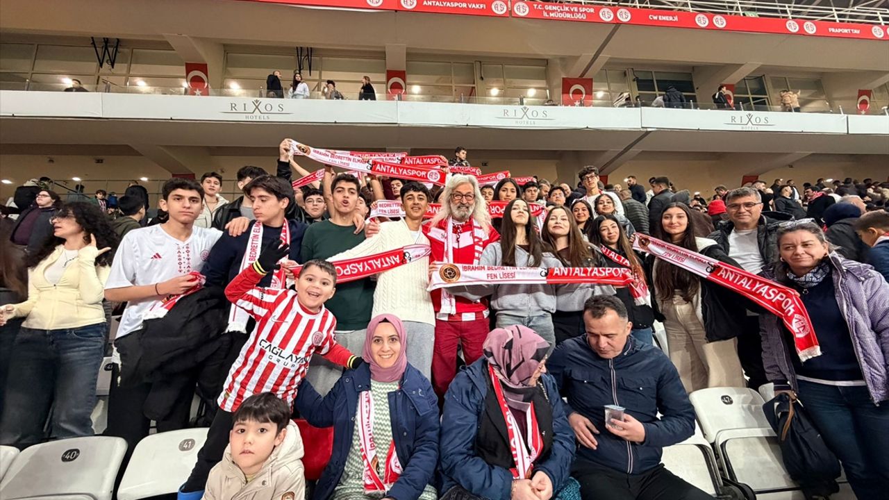 Antalyaspor'un atkı ve şapkaları hediye edilen öğrenciler, Trendyol Süper Lig'in 22. haftasında Antalyaspor-Samsunspor maçını izledi. Öğrenciler, maç boyunca tezahüratlarla Antalyaspor'u destekledi.