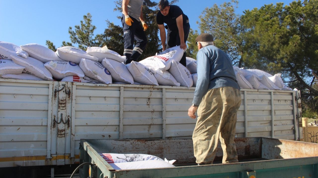 Korkuteli'de ise Yazır, Datköy, Kemerağzı, Küçükköy mahallelerinde 9 çiftçiye toplam 318 çuval süt yemi verildi.