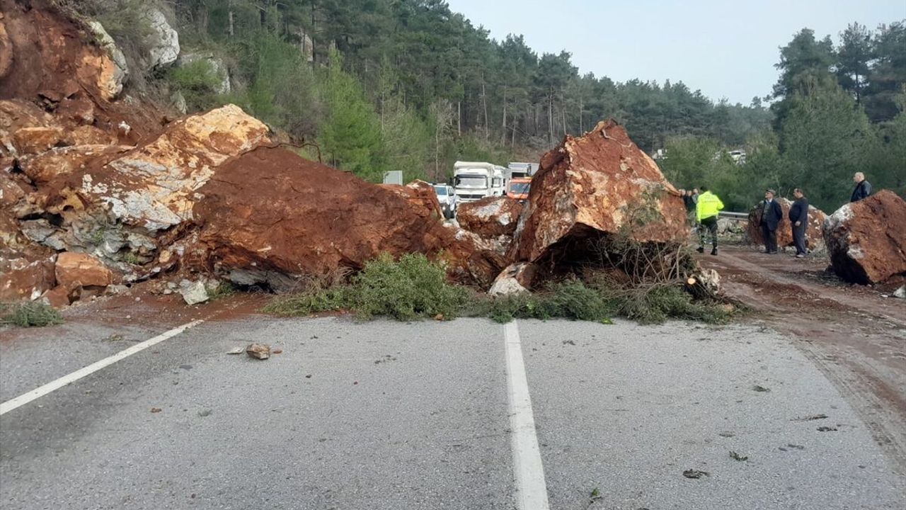 Yamaçlardan yola düşen kaya ve toprak parçaları sebebiyle yol trafiğe kapandı.