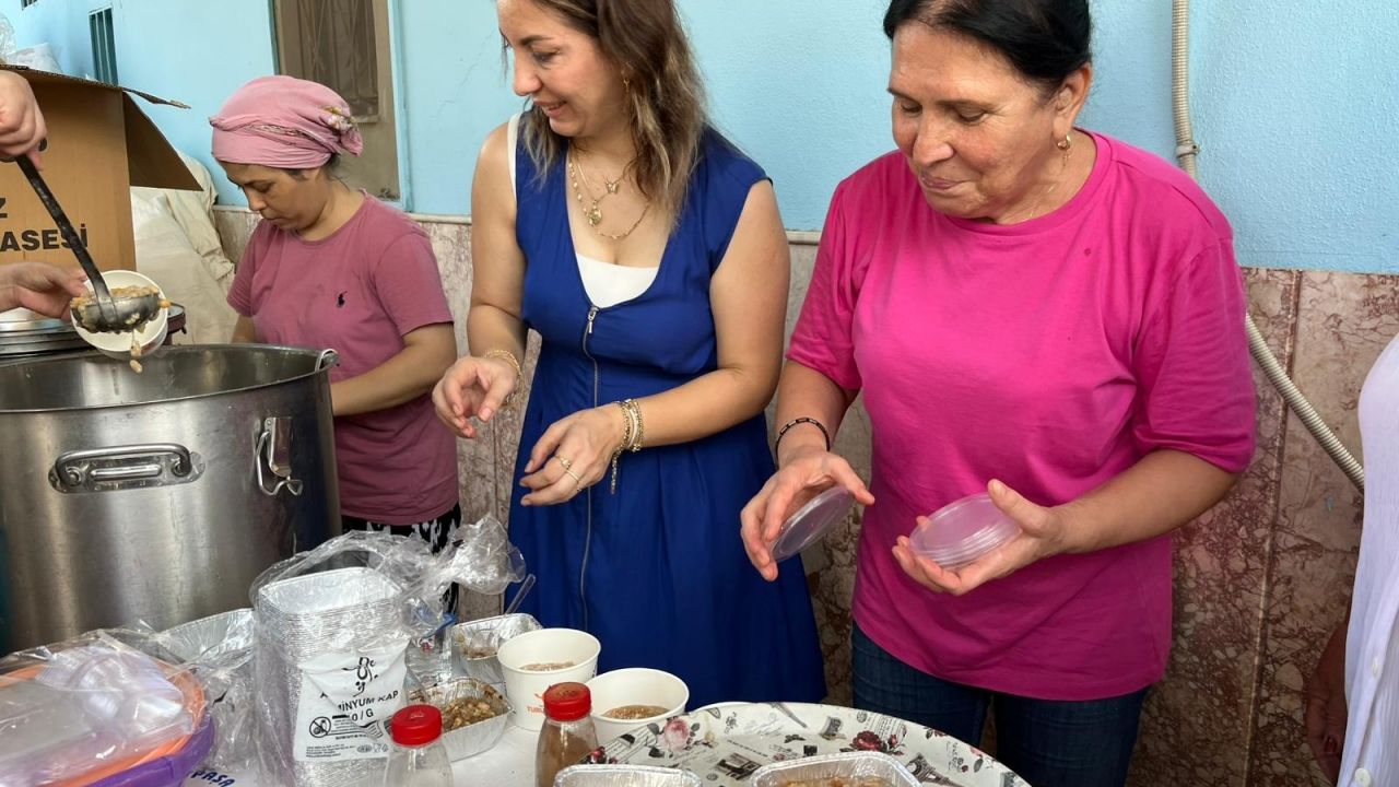 Cumhuriyet Mahallesi Muhtarı Gülay Eser'in öncülüğünde mahalle sakinlerinin temin ettikleri malzemelerle aşure hazırlandı.