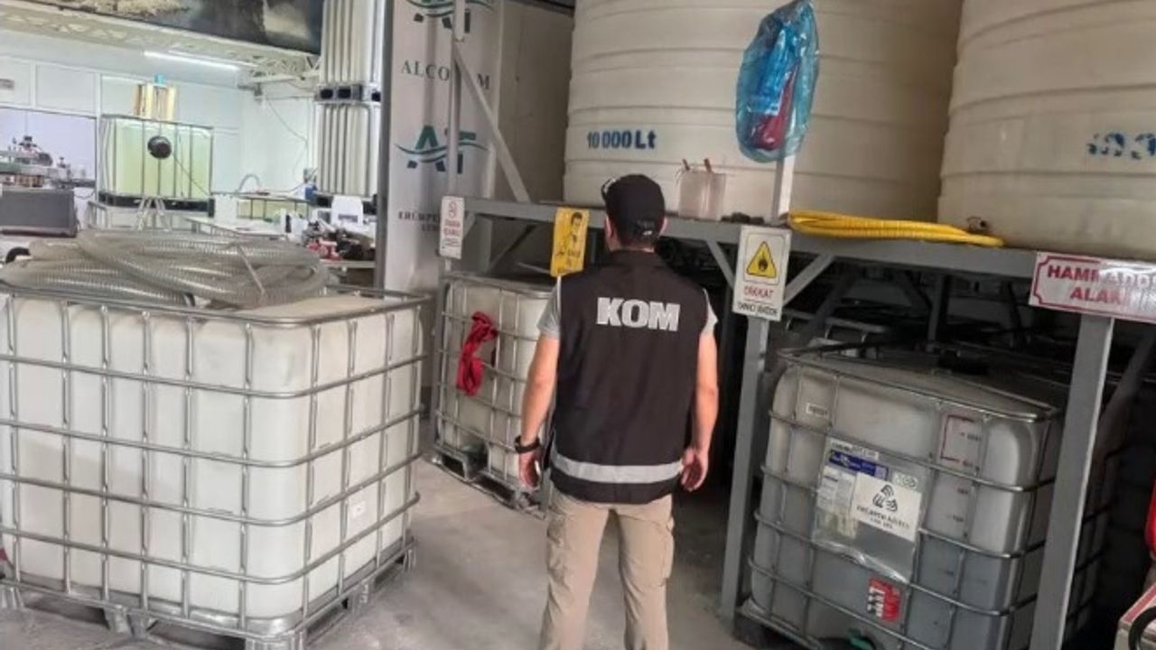 Ekiplerce 2 iş yeri ve 2 araçta yapılan aramalarda, 14 bin 884 litre kaçak alkol ele geçirildi, 2 şüpheli gözaltına alındı.