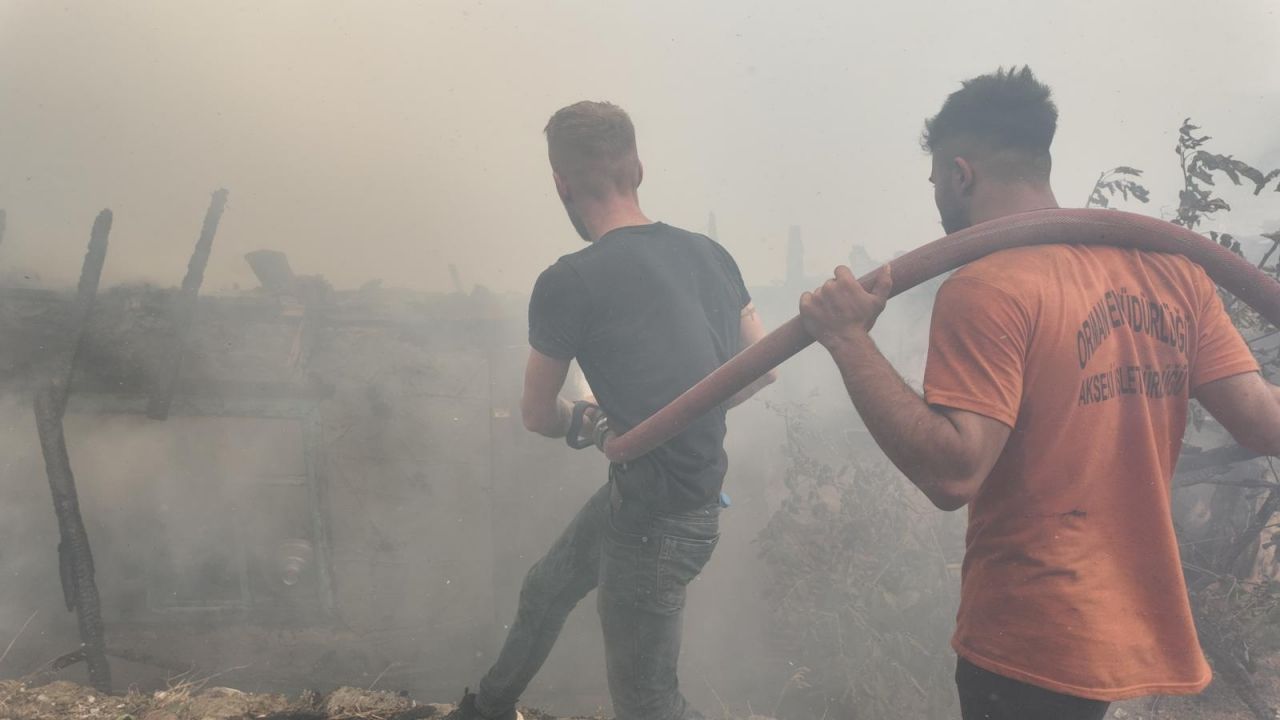ANTALYA (AA) - Antalya'nın Akseki ilçesinde otluk alanda başlayıp evlere sıçrayan yangına müdahale ediliyor.