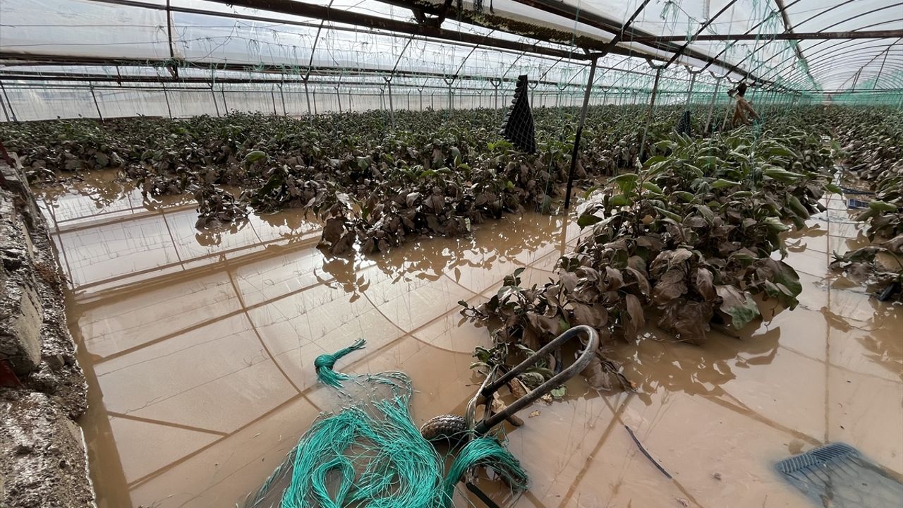 Kumluca'da dün gün boyu devam eden sağanak sonrası akşam saatlerinde derelerde su seviyesinin yükselmesiyle bazı ev, sera ve tarım arazilerini su bastı.