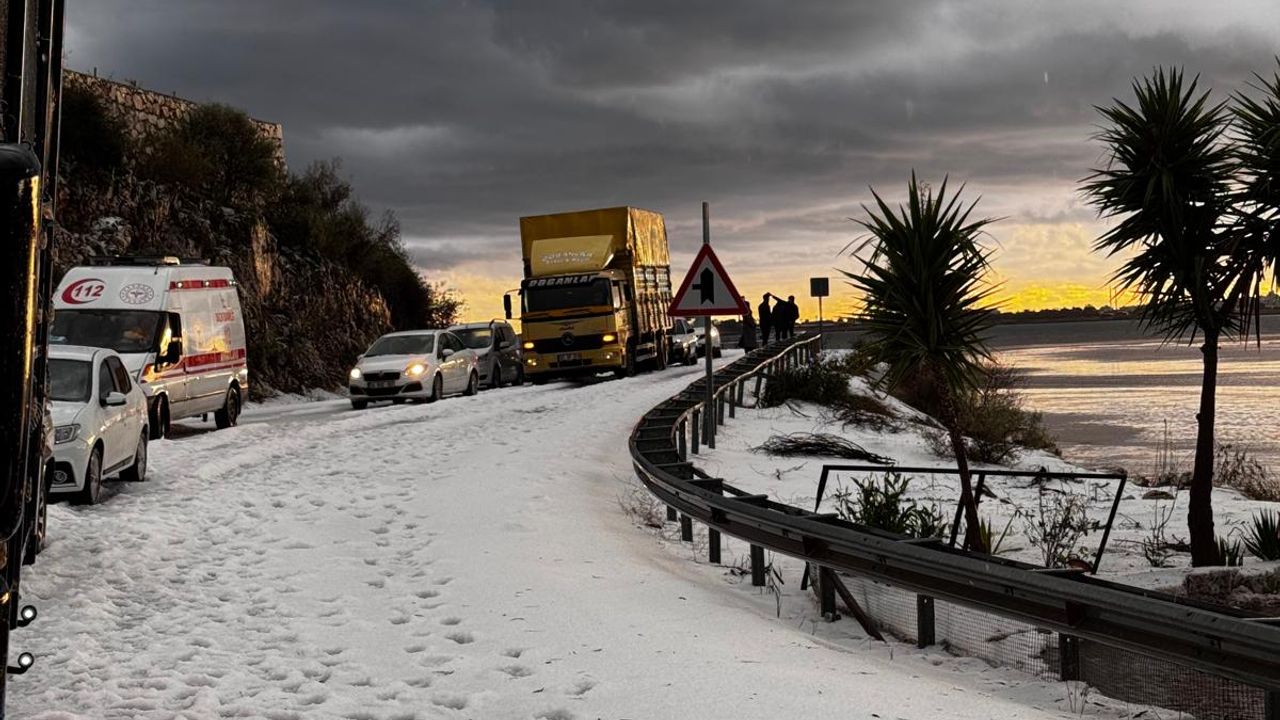 Dolu ve sağanak nedeniyle seralar zarar gördü. Kaş-Demre D400 kara yolu dolu yağışı nedeniyle ulaşıma kapandı, uzun araç kuyrukları oluştu.