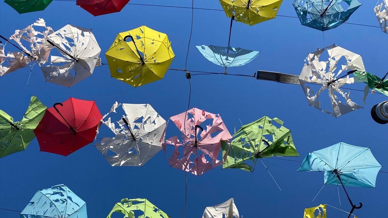Renk cümbüşü görüntüsüyle yerli ve yabancı turistlerin uğrak noktası haline gelen Şemsiyeli Sokak'ta havada asılı olan 450 renkli şemsiye zarar gördü.
