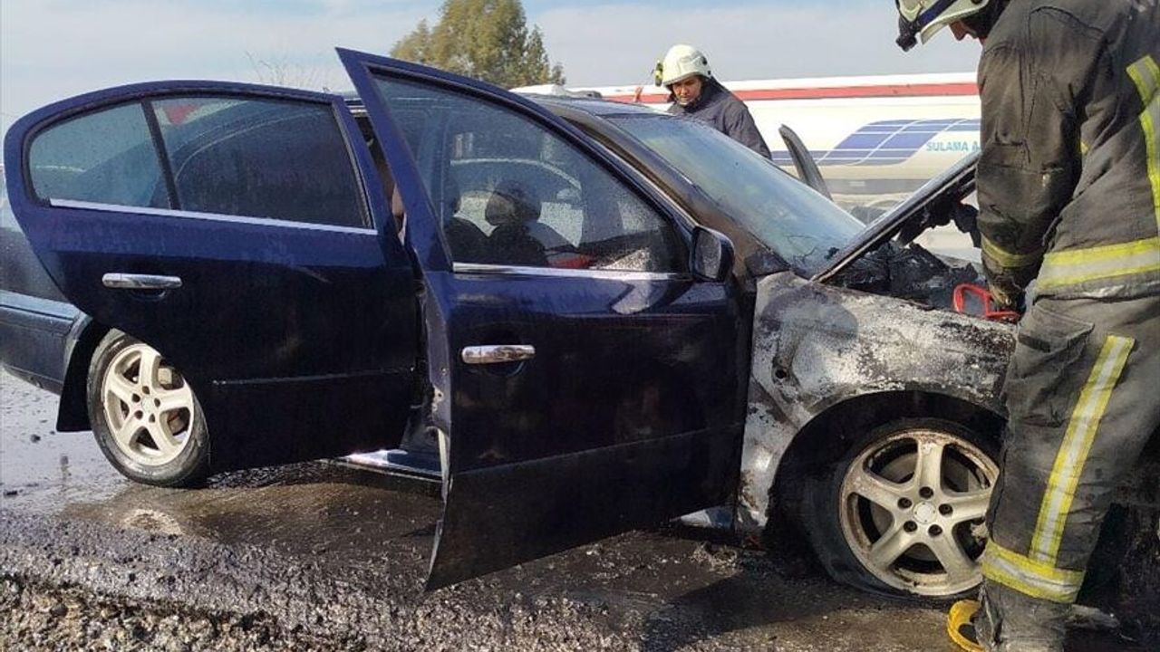 Yangında otomobilde maddi hasar meydana gelirken, olayla ilgili inceleme başlatıldı.